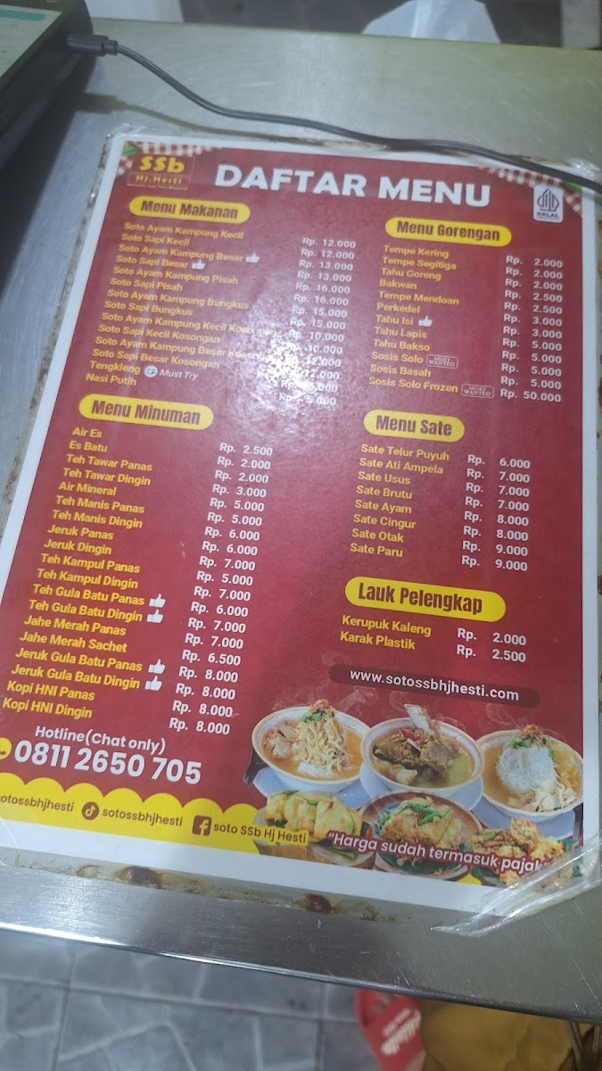 Welcome to Spesial Soto Boyolali (SSb) Hj Hesti, Cabang Benhil, a delightful destination for authentic Indonesian flavors nestled in the heart of Jakarta. The menu offers a selection of rich and flavorful soto, allowing patrons to choose between succulent chicken or tender beef as their protein base. The clear soup is well-seasoned, bursting with deep, savory taste that reflects the culinary heritage of Boyolali.